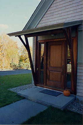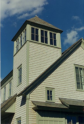 windows are tall awning type that mimic the barn slat ventilation flaps of