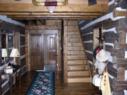 up of recycled old log buildings reassembled at the site and used as the
