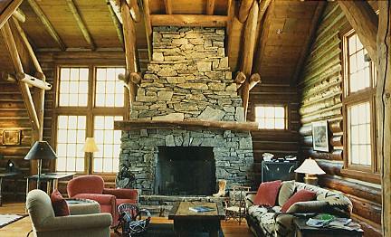 natural light. The living room with log trusses, bay seating area,