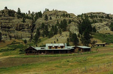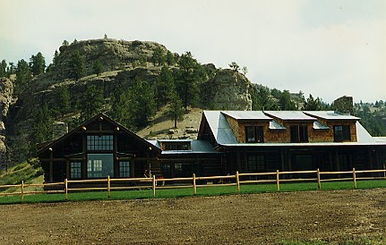 A new lodge pole pine ranch house erected with traditional techniques and